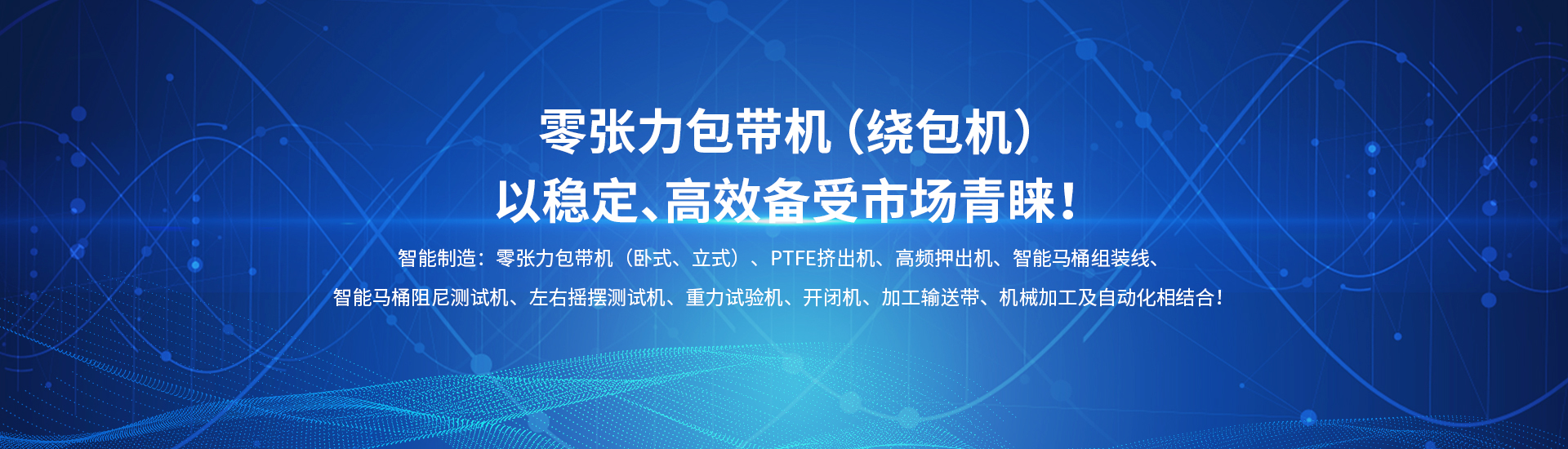 主要產(chǎn)品:押出機(jī)、包帶機(jī)、PTFE擠出機(jī)、智能電子坐便器組裝線、電子坐便器老化試驗(yàn)臺(tái)、阻尼耐久試驗(yàn)機(jī)…